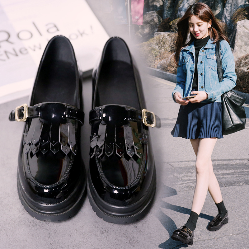 2016新款英伦风女鞋春秋厚底松糕鞋小皮鞋流苏浅口粗跟中跟单鞋女