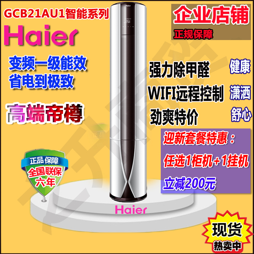 【迎新特惠震撼来袭:任购1款柜式空调加1款壁挂式空调立减200元】【企业认证资质店铺】【正规发票 全国联保六年】【24小时内发货】GCB21是海尔新品 变频一级能效 带WIFI远程控制 除甲醛 EAC12是定频二级能效 GDD23是变频三级能效