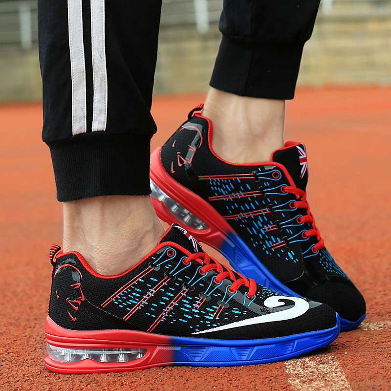 鞋子采用飞线技术鞋面,360°更透气! 底部为PU底+100%真气垫+防滑橡胶,强效缓震更具弹力! 标准运动鞋码,不偏大小,选择平时所穿运动鞋类号码即可! 店铺支持7天无理由退换货并赠送运费险,售后无忧! 还在等什么?一双性价比好鞋,你值得拥有!!!
