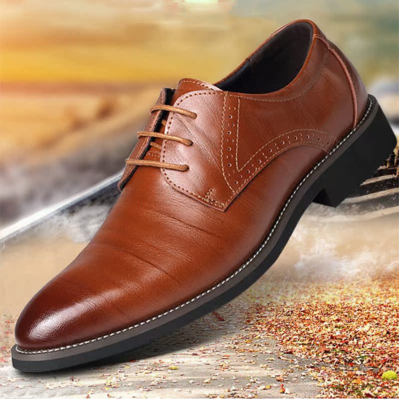 舒适优质尖头英伦男鞋;耐磨牛皮;透气猪皮内里;耐磨的橡胶大底;微翘的小尖头,优雅风度;轻便透气穿的更舒心,是您的首选