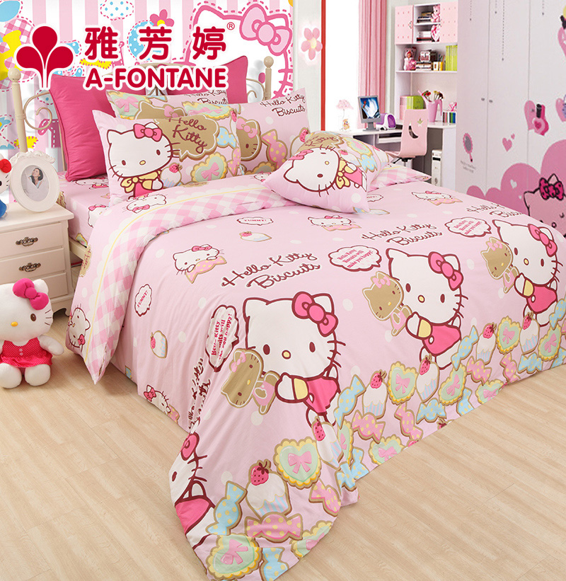 香港雅芳婷家纺hellokitty四件套纯棉卡通儿童床单床笠床上用品