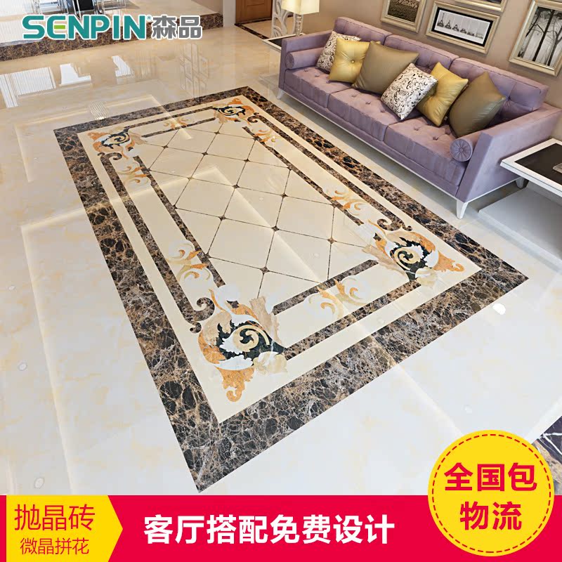 森品 客厅地板砖入户玄关过道走廊地面瓷砖仿水刀微晶石拼花地砖