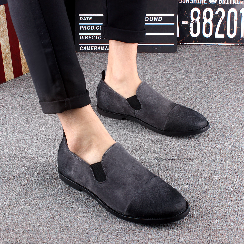 复古磨砂真皮一脚蹬休闲皮鞋乐福鞋男鞋潮鞋时尚豆豆鞋男圆头皮鞋