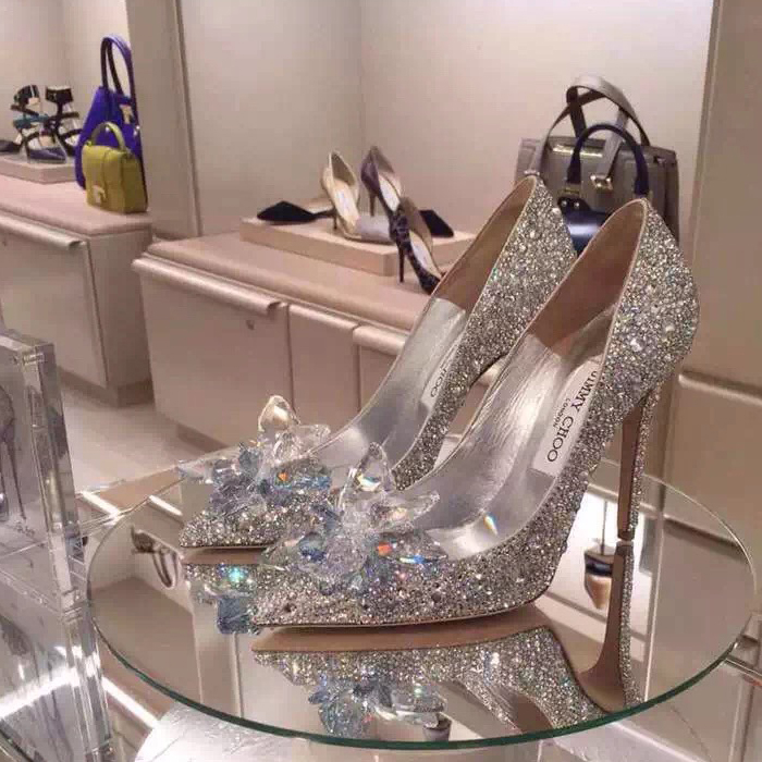 灰姑娘水晶鞋baby同款婚鞋银色新娘鞋尖头高跟鞋细跟婚纱鞋女春秋