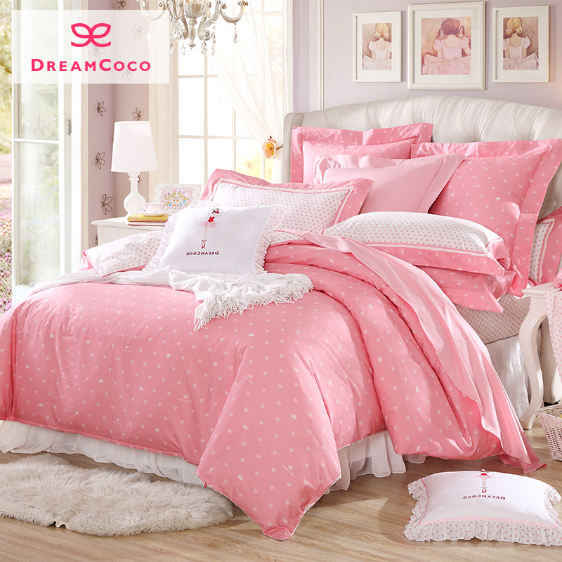 梦洁出品 DreamCoco 纯棉四件套 全棉床上用品 被套床单 甜心波点