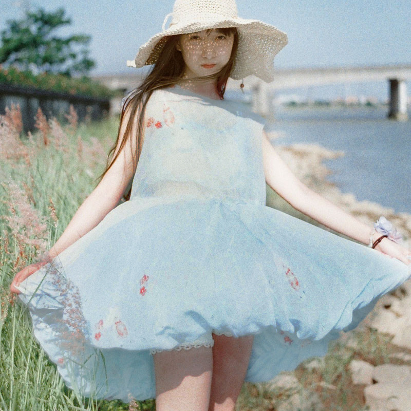 北冥有渔原创 夏季欧根纱连衣裙印花中袖女装小清新蓬蓬裙中长款 ¥188.00