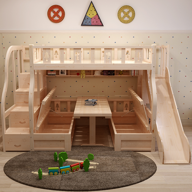 多功能箱体儿童高低床双层梯柜床实木子母床上下铺带书桌抽屉滑梯 ¥2700.00