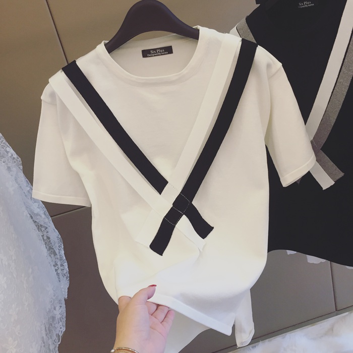 MR 2016春夏新款女装 韩版套头甜美海军学院风学生条纹短袖针织衫 -